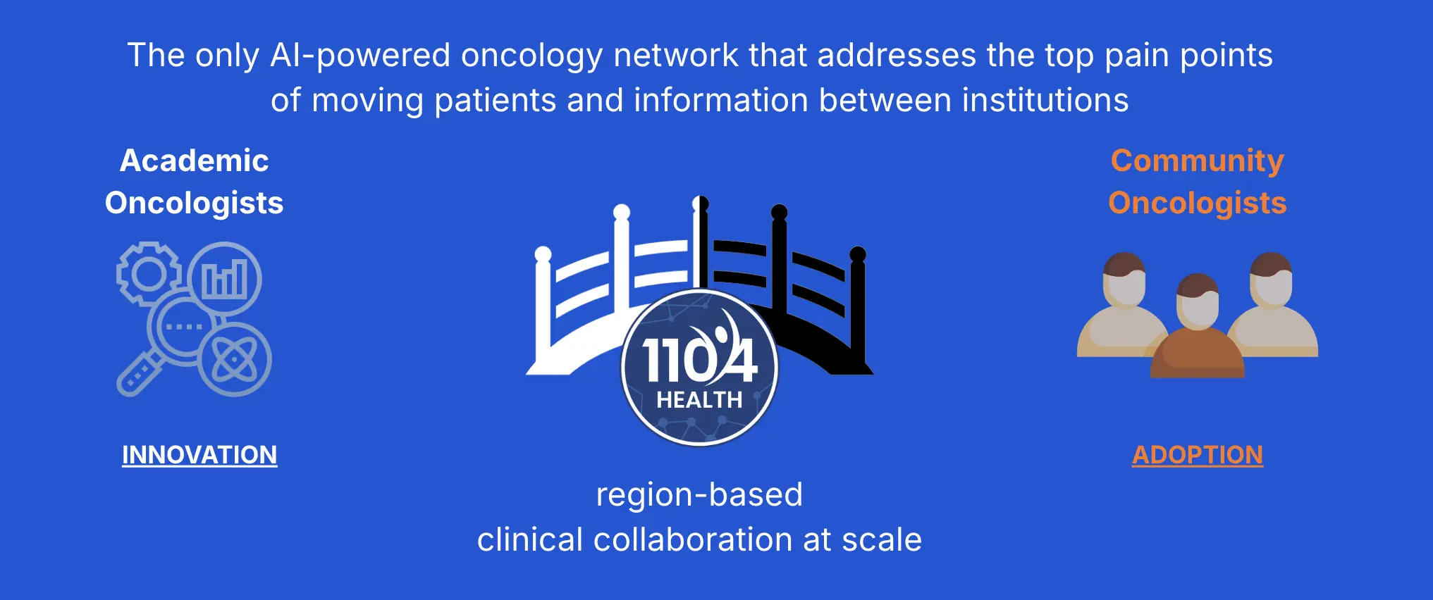 1104Health is a physician-first network that replaces fragmented, one-way referrals with a shared care model—so oncologists can collaborate, share patients and expertise, and stay connected throughout the care journey.